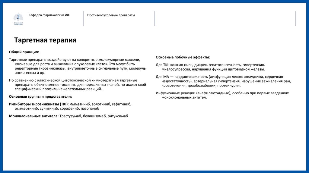 Таргетные препараты воздействуют на конкретные молекулярные мишени,