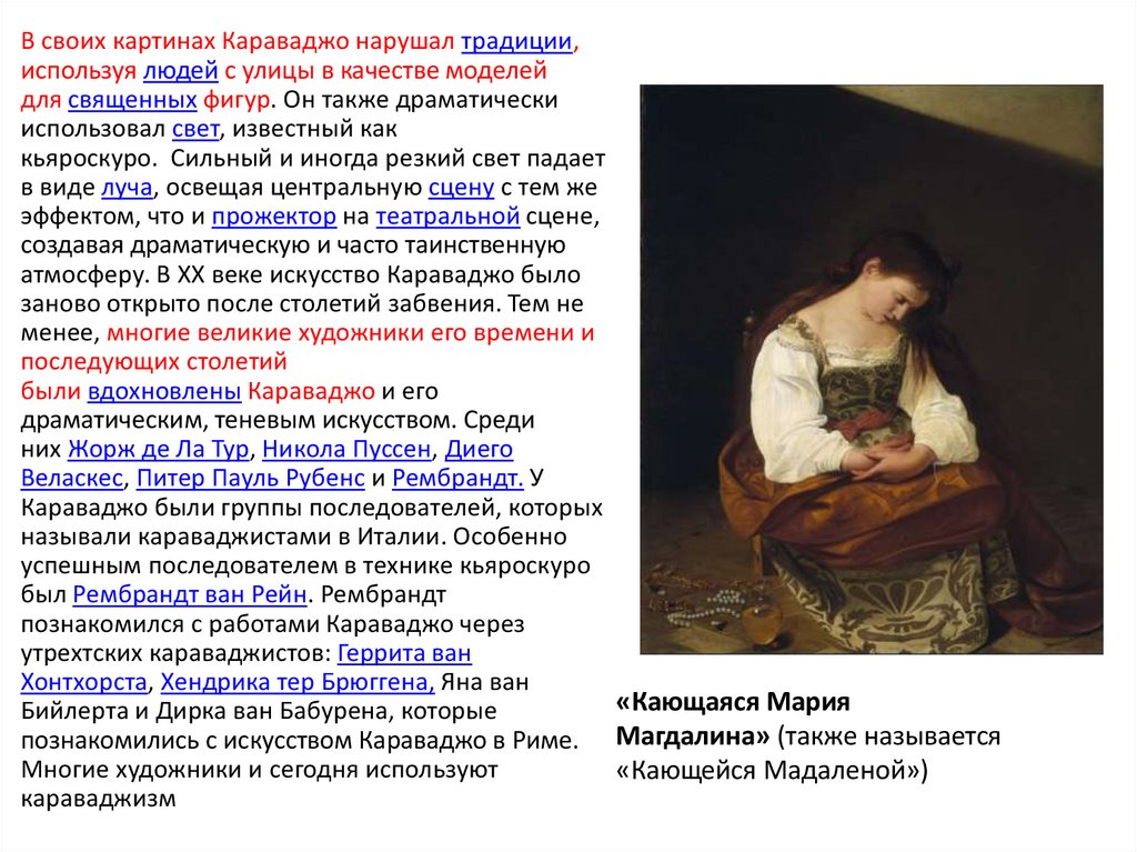 познакомились с искусством Караваджо в Риме. Магдалина» (также называется