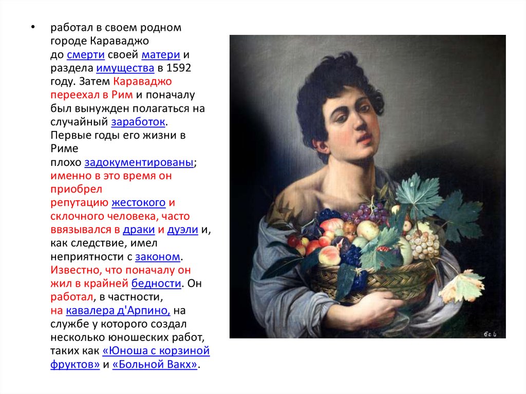 В своих картинах Караваджо нарушал традиции,используя людей с улицы в качестве моделей