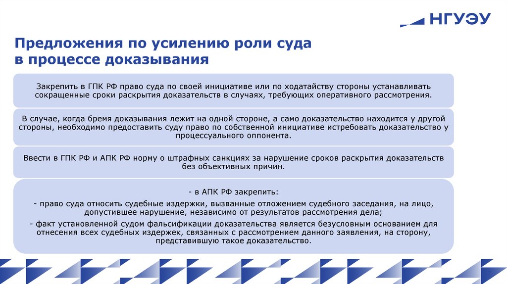 Ввести в ГПК РФ и АПК РФ норму о штрафных санкциях за нарушение сроков раскрытия доказательств