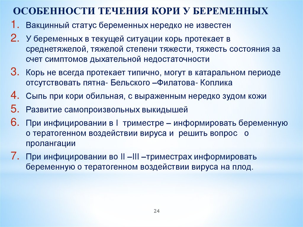 ОСОБЕННОСТИ ТЕЧЕНИЯ КОРИ У БЕРЕМЕННЫХ1. Вакцинный статус беременных нередко не известен