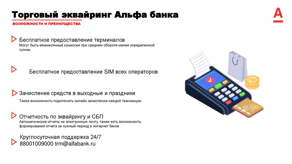 Торговый эквайринг Альфа банкаВОЗМОЖНОСТИ И ПРЕИМУЩЕСТВА