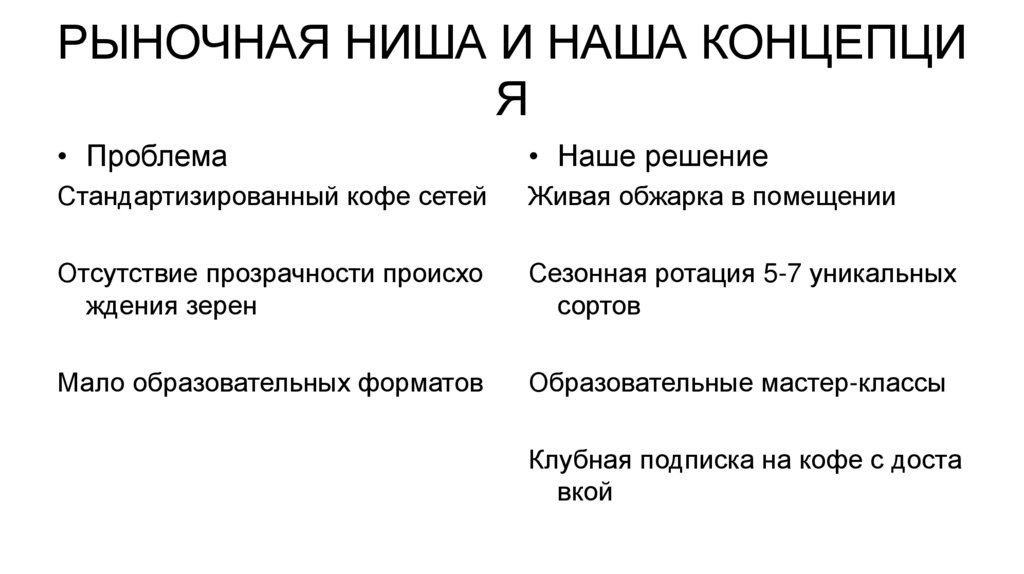 РЫНОЧНАЯ НИША И НАША КОНЦЕПЦИЯ