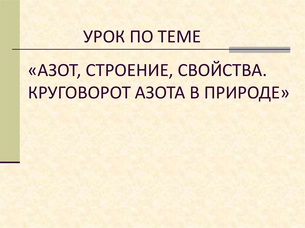 УРОК ПО ТЕМЕ«АЗОТ, СТРОЕНИЕ, СВОЙСТВА.