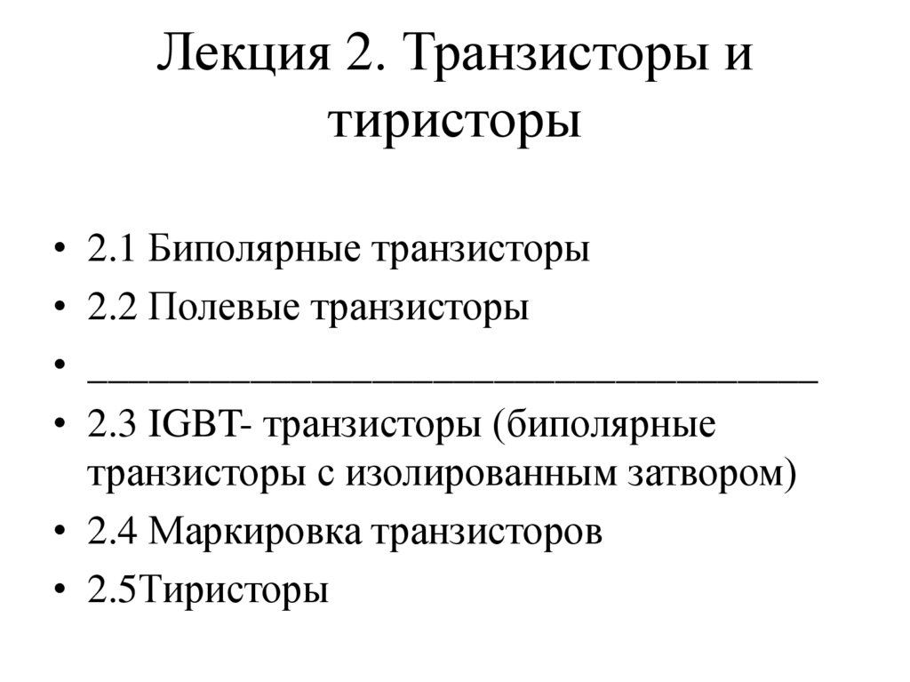• 2.1 Биполярные транзисторы• 2.2 Полевые транзисторы