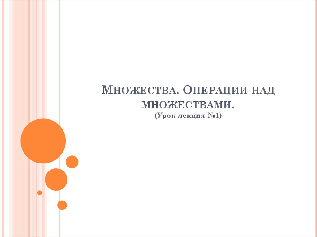 1. Множества. Операции над множествами. (Урок-лекция №1)