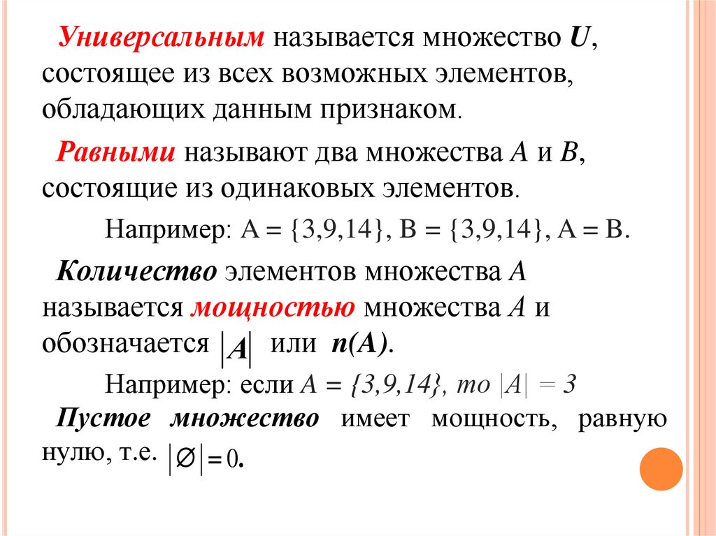 Универсальным называется множество U,состоящее из всех возможных элементов,