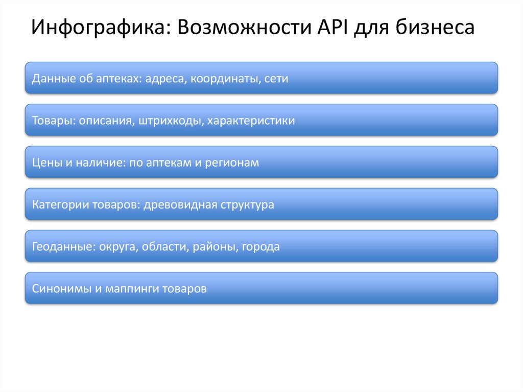 Инфографика: Возможности API для бизнесаДанные об аптеках: адреса, координаты, сети