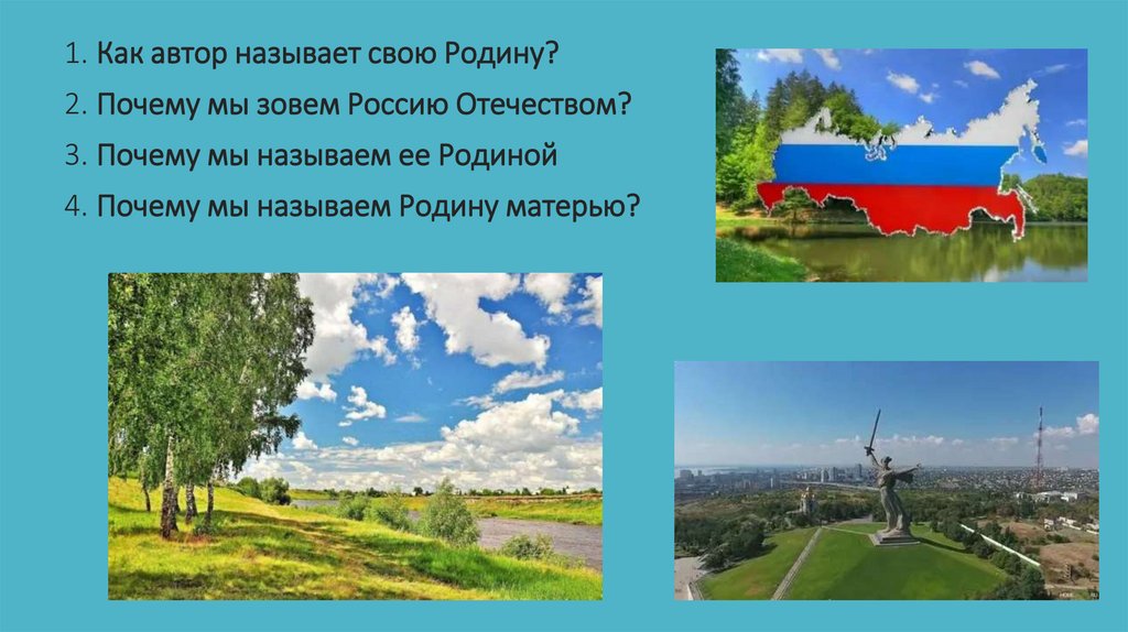 1. Как автор называет свою Родину?2. Почему мы зовем Россию Отечеством?