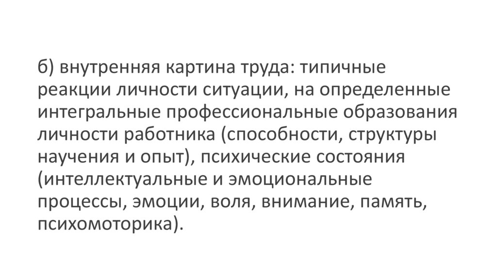 б) внутренняя картина труда: типичныереакции личности ситуации, на определенные
