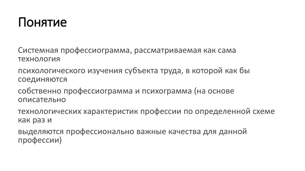 ПонятиеСистемная профессиограмма, рассматриваемая как сама