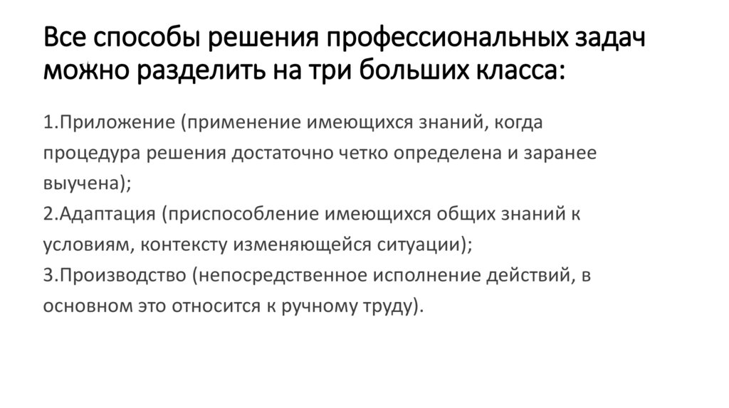Все способы решения профессиональных задачможно разделить на три больших класса: