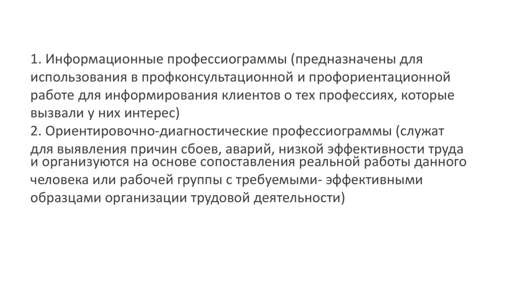 1. Информационные профессиограммы (предназначены дляиспользования в профконсультационной и профориентационной
