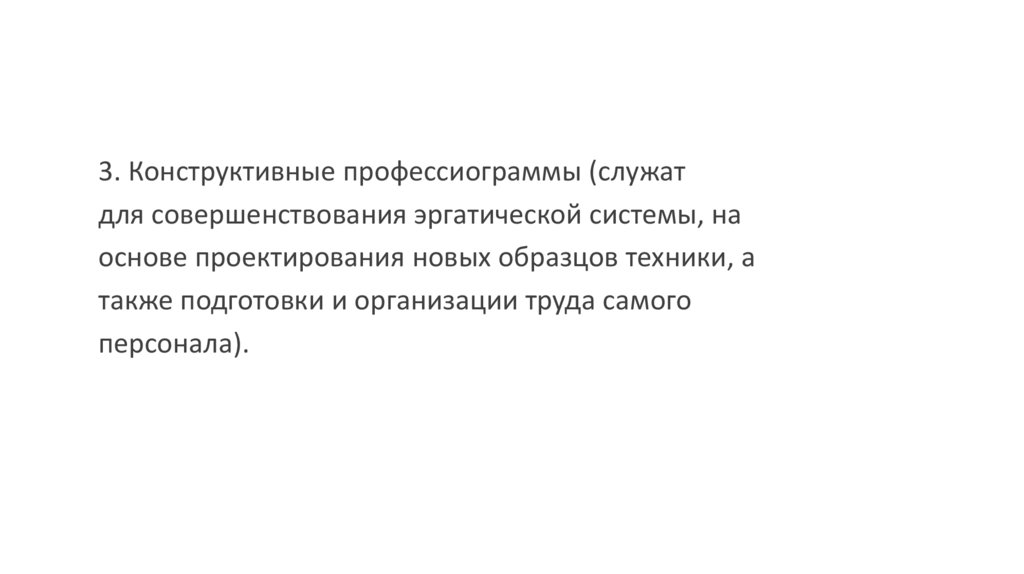 3. Конструктивные профессиограммы (служатдля совершенствования эргатической системы, на