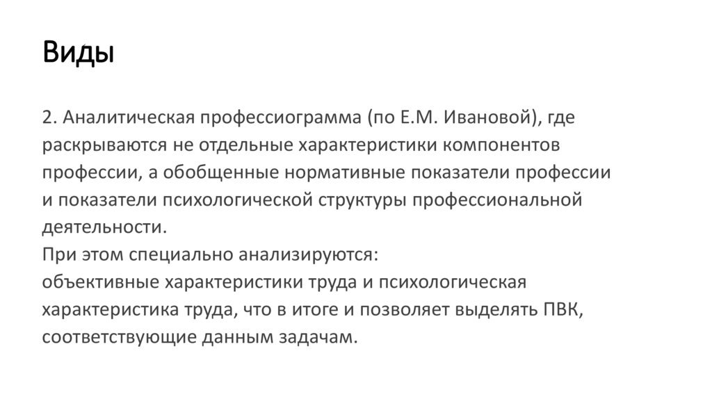 Виды2. Аналитическая профессиограмма (по Е.М. Ивановой), где