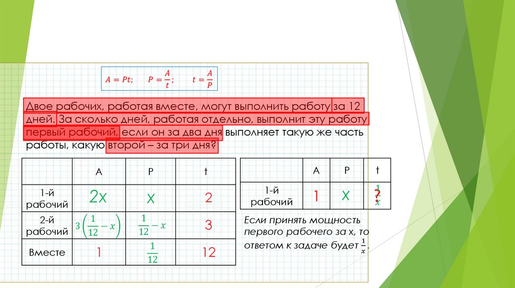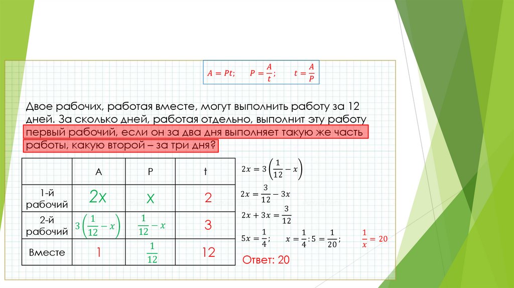 Двое рабочих, работая вместе, могут выполнить работу за 12 дней. За сколько дней,