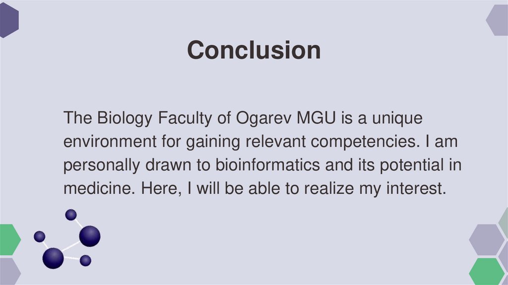 ConclusionThe Biology Faculty of Ogarev MGU is a unique