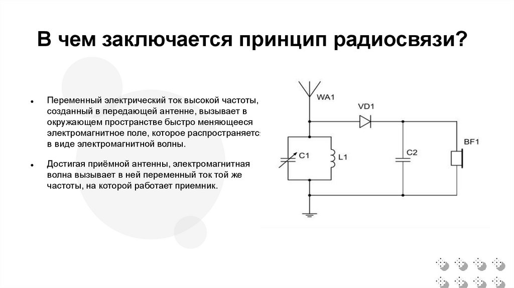 В чем заключается принцип радиосвязи?Переменный электрический ток высокой частоты,