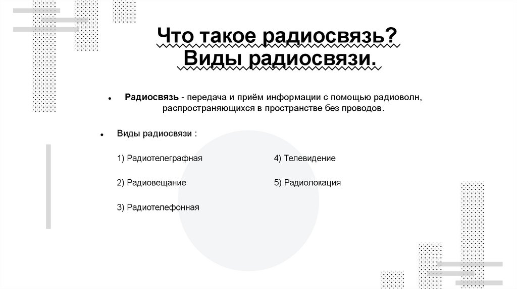 Радиосвязь - передача и приём информации с помощью радиоволн,
