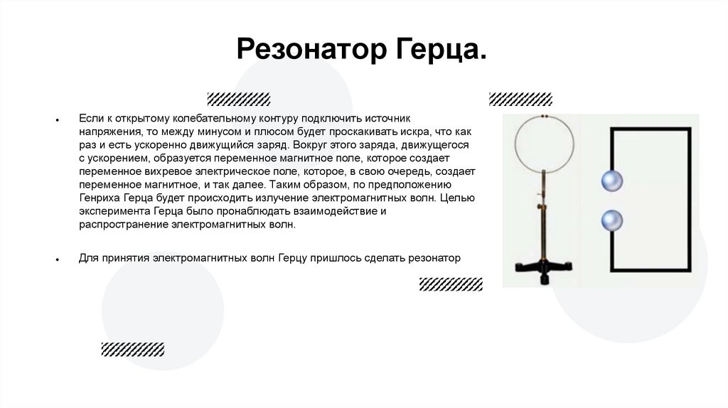 Для принятия электромагнитных волн Герцу пришлось сделать резонатор