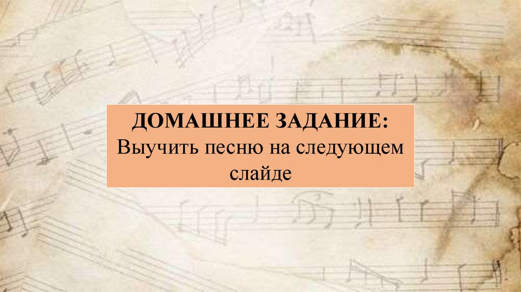 ДОМАШНЕЕ ЗАДАНИЕ:Выучить песню на следующем