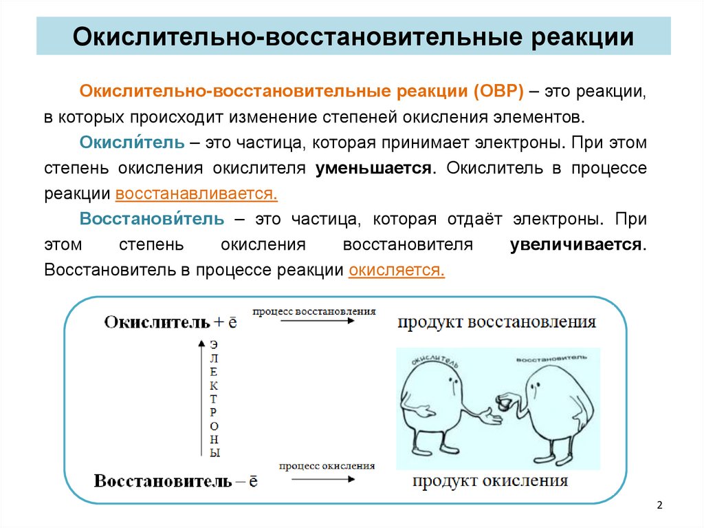2 окислитель, процесс восстановления