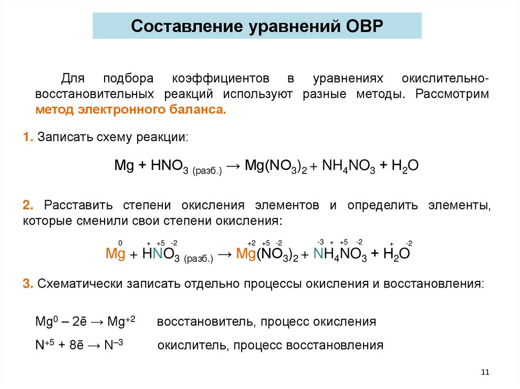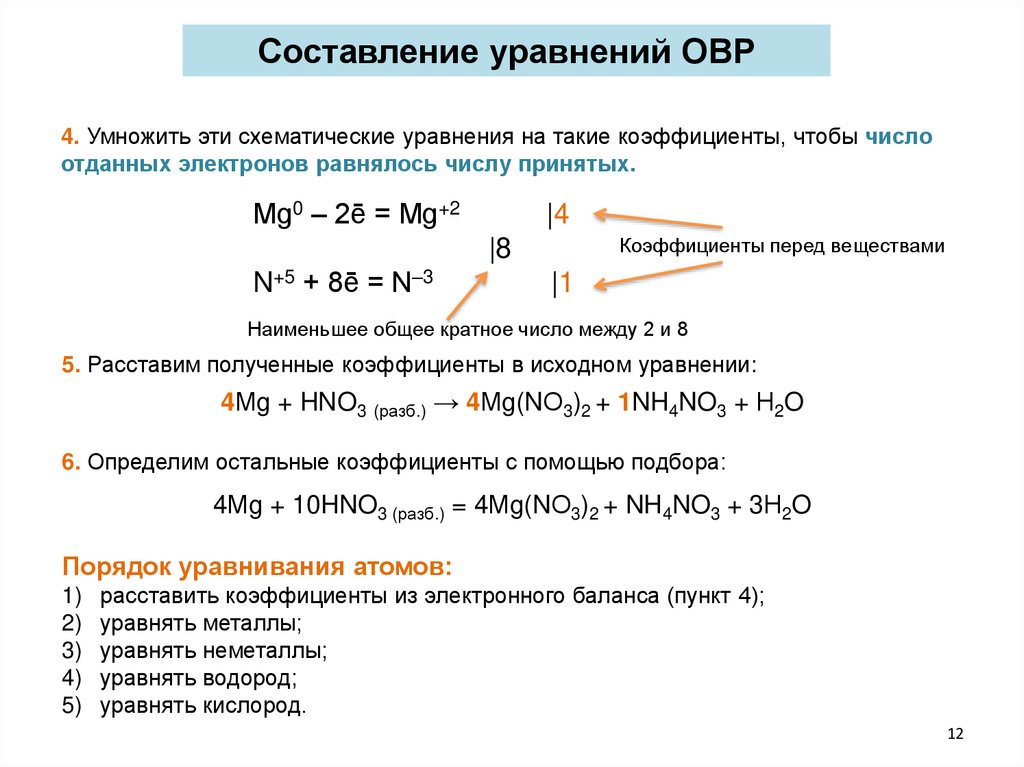 расставить коэффициенты из электронного баланса (пункт 4);