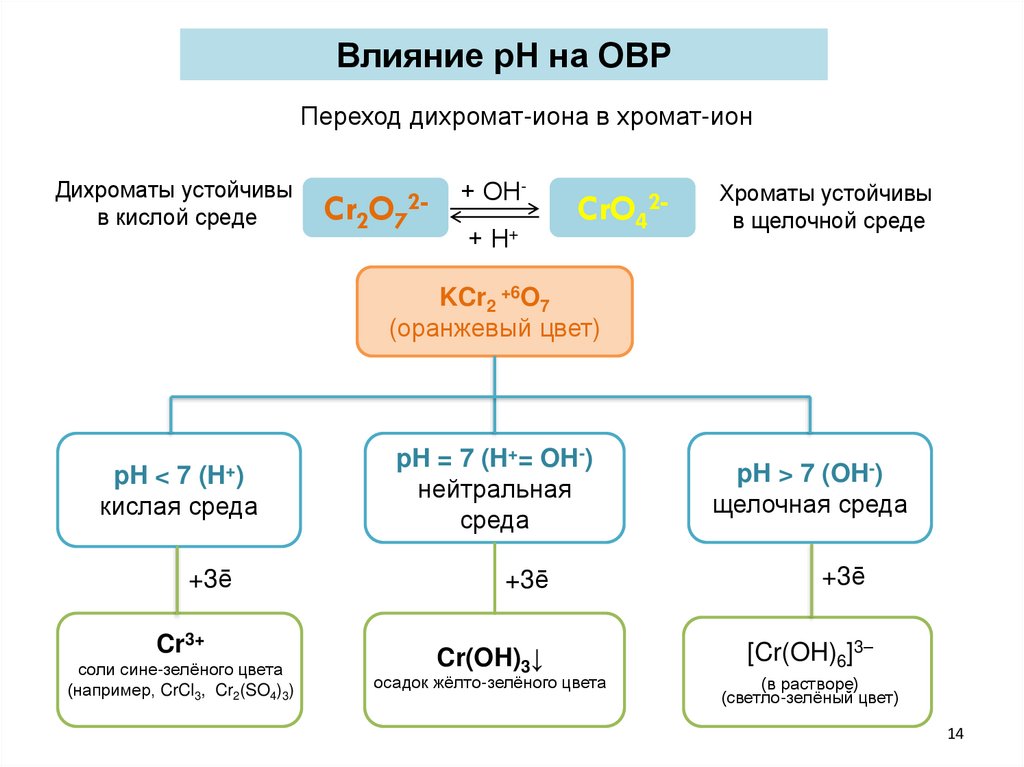 Влияние рН на ОВРПереход дихромат-иона в хромат-ион