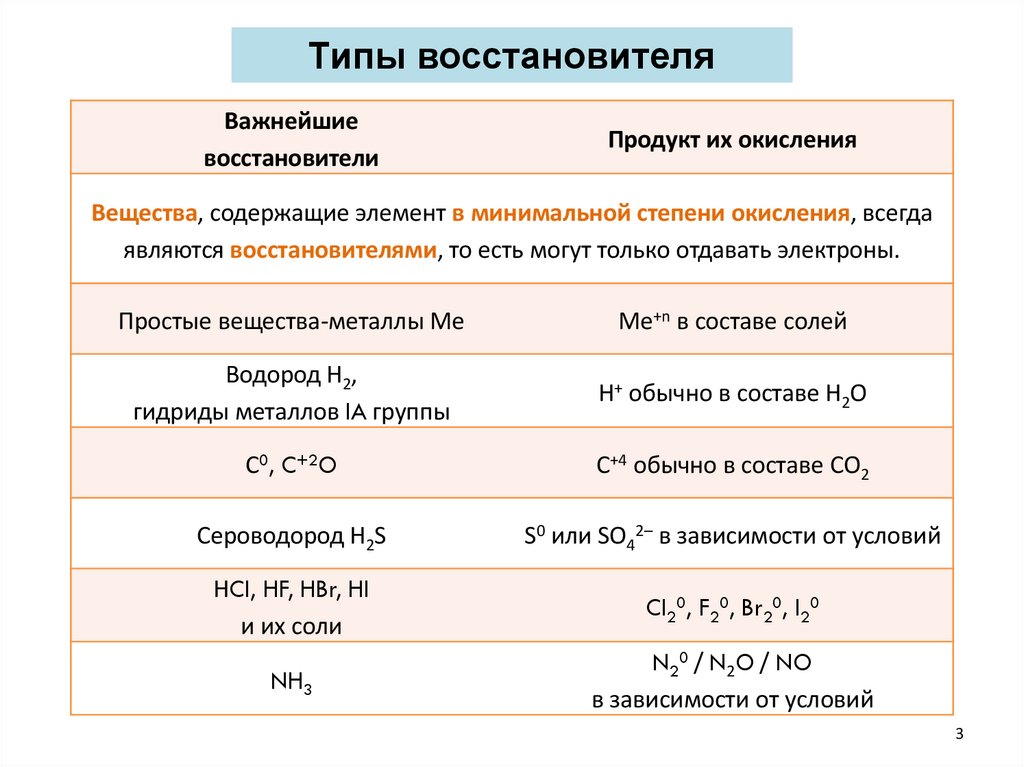 Типы восстановителяВажнейшие