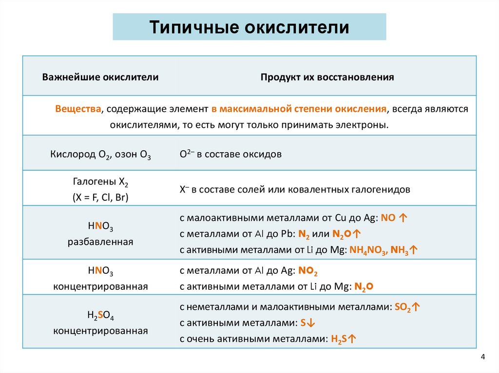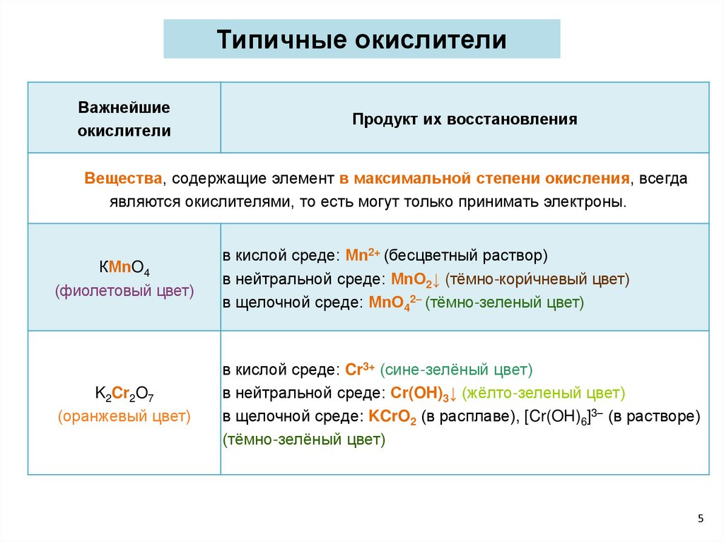 Типичные окислителиВажнейшие окислители
