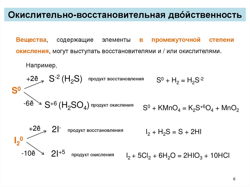 окисления, могут выступать восстановителями и / или окислителями.
