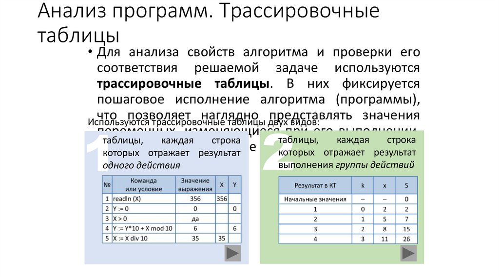 Анализ программ. Трассировочныетаблицы