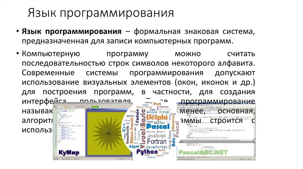 Язык программирования• Язык программирования – формальная знаковая система,