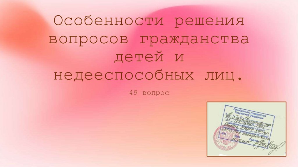 1. Особенности решения вопросов гражданства детей и недееспособных лиц.