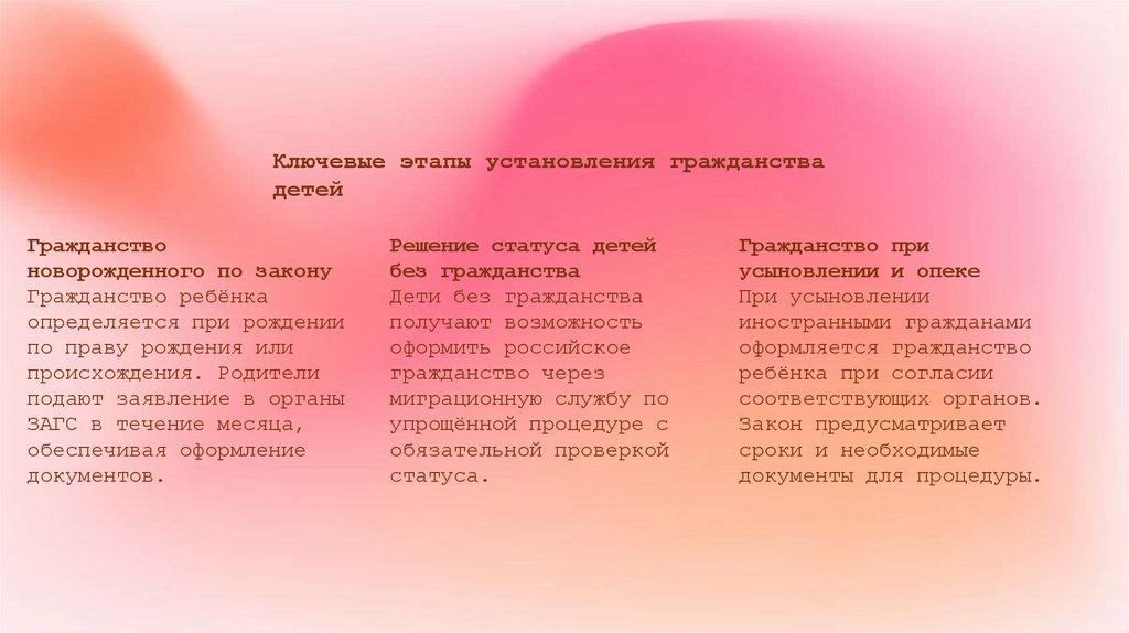 Ключевые этапы установления гражданствадетей