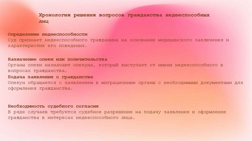 Хронология решения вопросов гражданства недееспособныхлиц