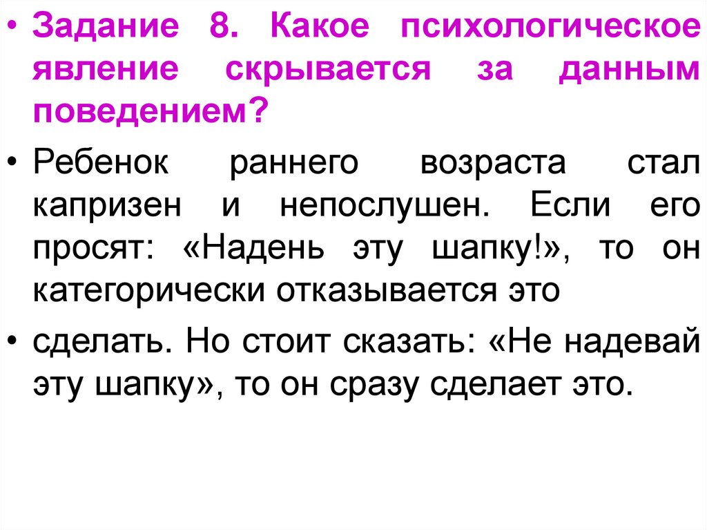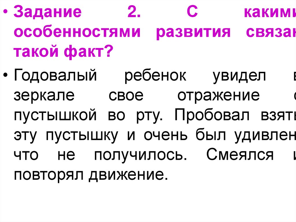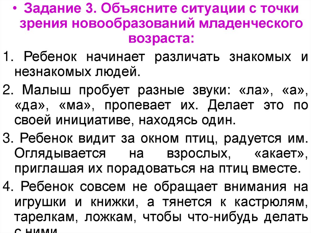• Задание 3. Объясните ситуации с точкизрения новообразований младенческого