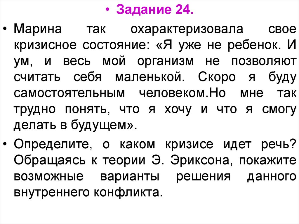 Обращаясь к теории Э. Эриксона, покажите