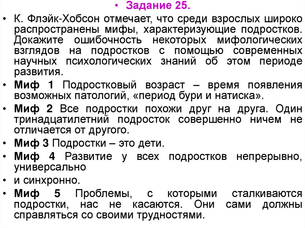 • Задание 25.• К. Флэйк-Хобсон отмечает, что среди взрослых широко