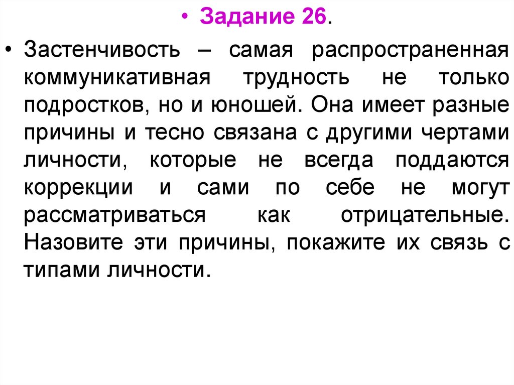 • Задание 26.• Застенчивость – самая распространенная