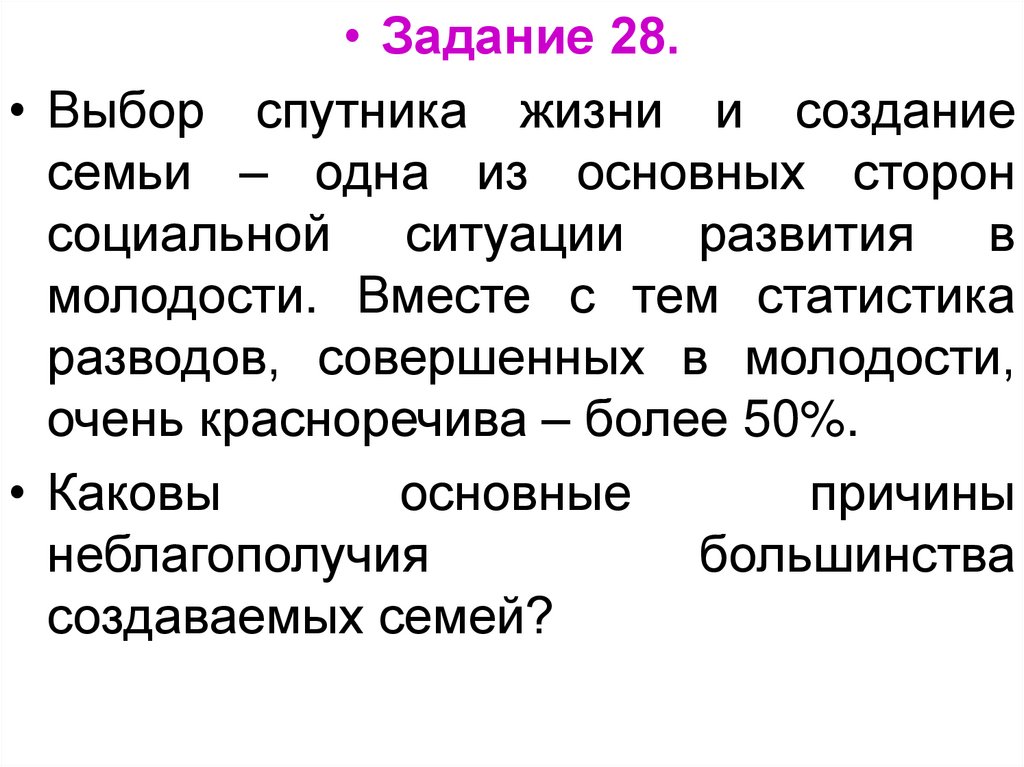 • Задание 28.• Выбор спутника жизни и создание