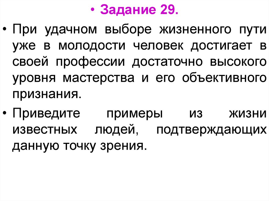 • Задание 29.• При удачном выборе жизненного пути