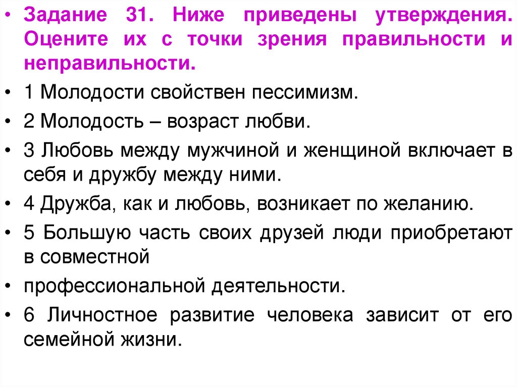 • Задание 31. Ниже приведены утверждения.Оцените их с точки зрения правильности и