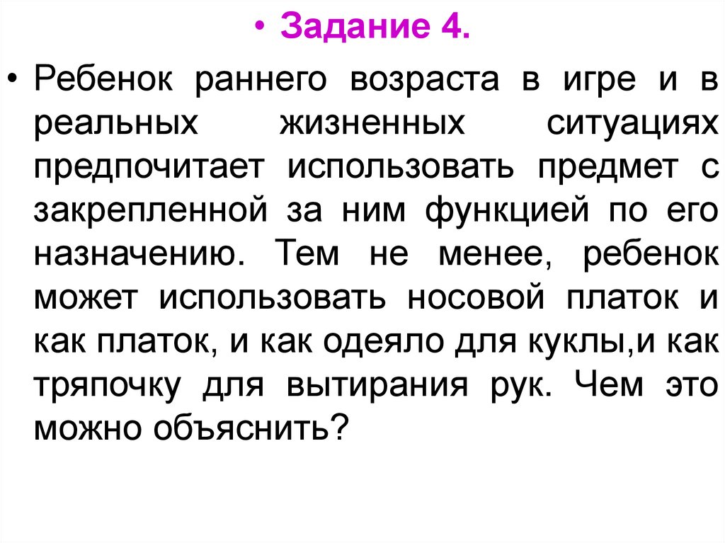 • Задание 4.• Ребенок раннего возраста в игре и в