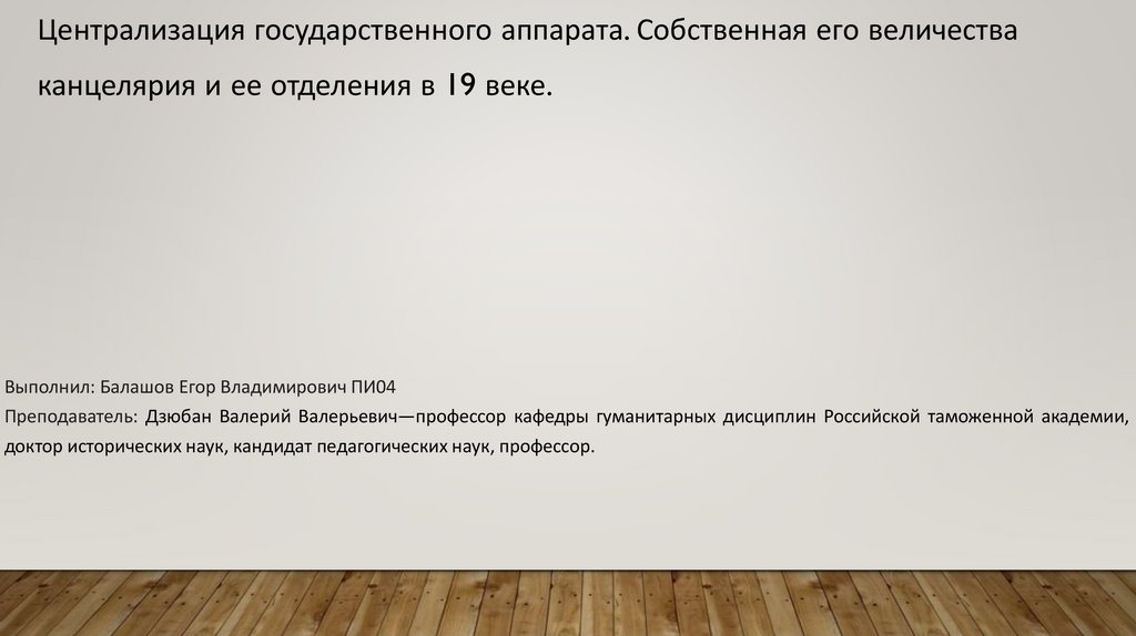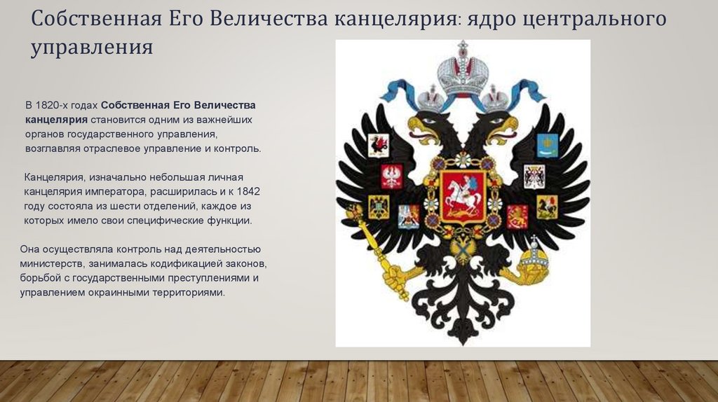 Централизация государственного аппарата. Собственная его величестваканцелярия и ее отделения в 19 веке.