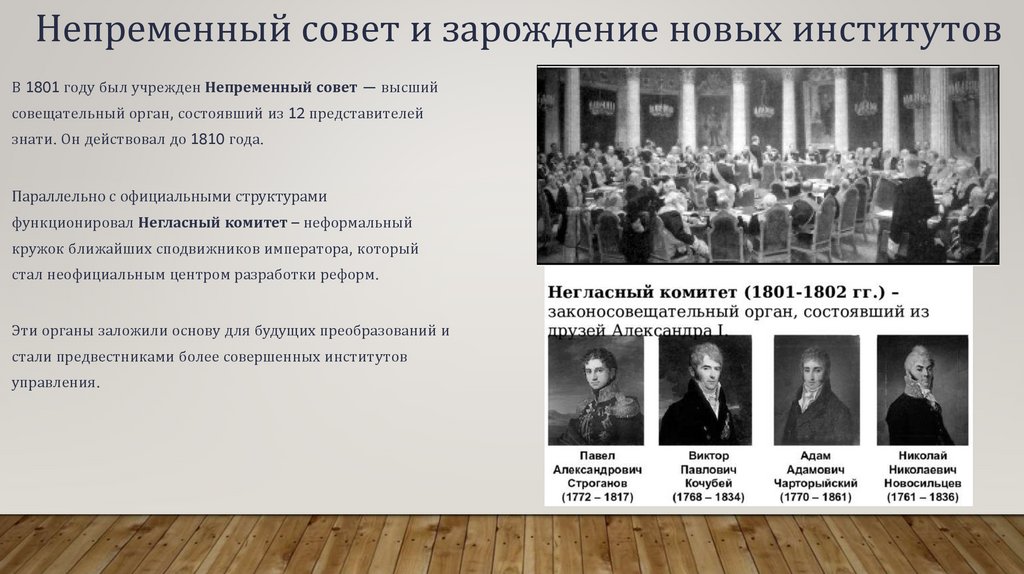 Непременный совет и зарождение новых институтовВ 1801 году был учрежден Непременный совет — высший