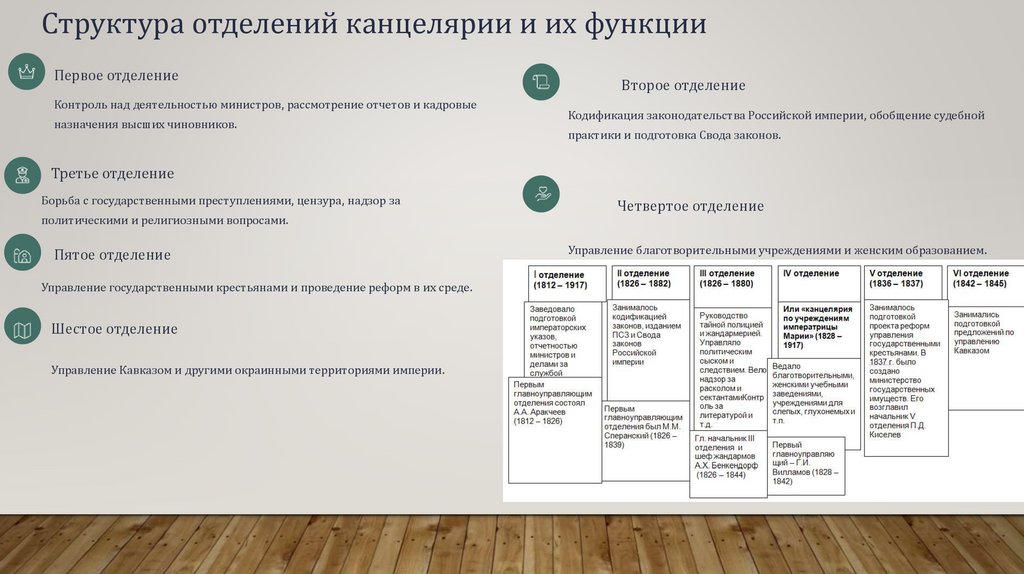 Структура отделений канцелярии и их функцииПервое отделение