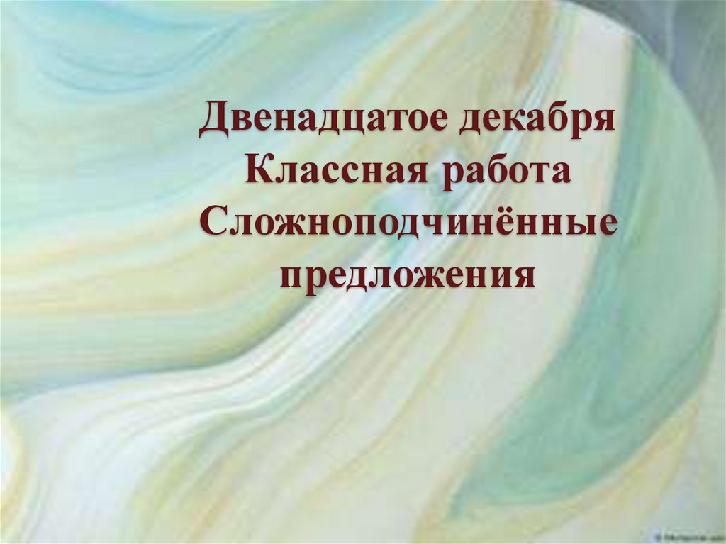 1. Двенадцатое декабря Классная работа Сложноподчинённые предложения