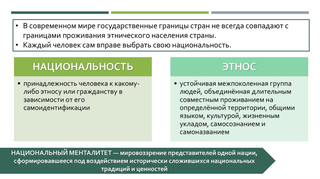 • В современном мире государственные границы стран не всегда совпадают сграницами проживания этнического населения страны.