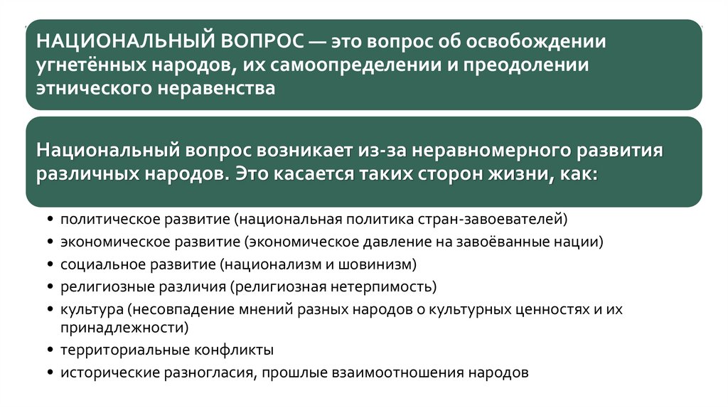 Национальный вопрос возникает из-за неравномерного развития